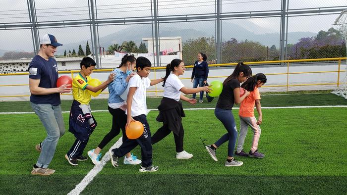 Left/Top: Xavier students play with local children during the annual Guatemala service trip, Right/Bottom: Mercy and Xavier students rehearse the production of Pippin on February 3, 4 and 5.